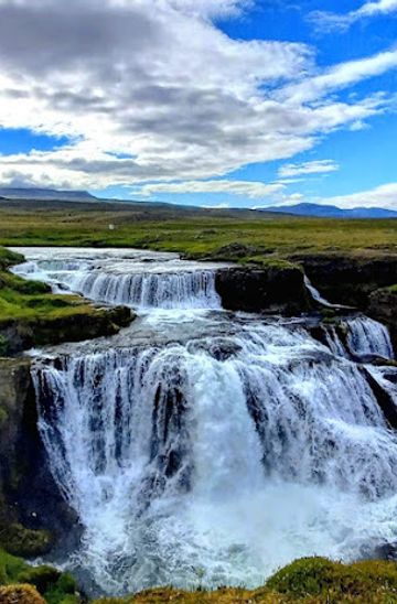 Discover the breathtaking beauty of Reykjafoss, an iconic Icelandic waterfall that captivates visitors with its stunning cascades and tranquil surroundings.