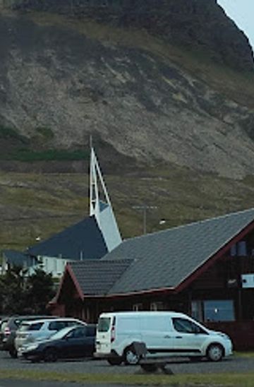From the center of Ólafsvík, head towards Ólafsbraut street. If you are near the church, walk down the path leading away from it towards the main road. Once you reach Ólafsbraut, turn left. Continue walking straight for about 1 kilometer. Sker Restaurant will be on your right at number 355, easily recognizable by its sign and the surrounding landscape.