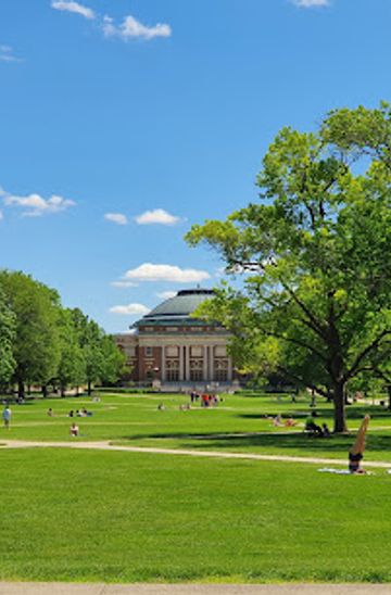 Explore the Main Quad in Urbana, Illinois, a beautiful park and cultural hub at the University of Illinois, perfect for relaxation and discovery.