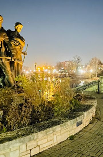 Pioneer Park is located in downtown Elgin, easily accessible on foot from many nearby points of interest. From the Hemmens Cultural Center, walk west along Highland Avenue, then turn left onto Grove Avenue. The park will be on your right. This short walk offers a pleasant way to approach the park, allowing you to take in the local scenery.