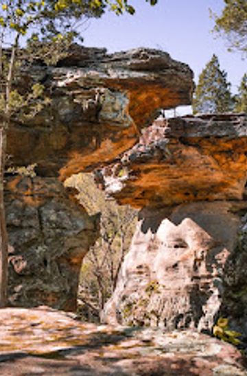 To reach Devil's Standtable Nature Trail by car, enter Giant City State Park from Giant City Road. Follow the park road to the designated parking area for the trail, approximately 3 miles from the entrance. Parking is free. From the parking area, follow the marked trail to the Devil's Standtable.