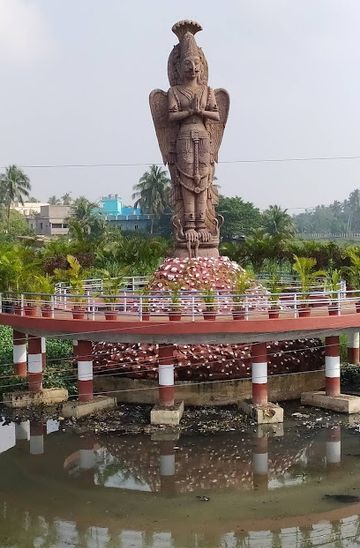 If you are traveling by car, start from the Jagannath Temple in Puri, which is a central landmark. Head southeast on Grand Road (Bada Danda) and continue straight for about 1 km. Turn right onto the road leading to RRCM+252, where the Garuda Statue is located. There is usually parking available nearby, but be mindful of any local parking regulations.