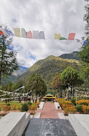 If you are driving from Tawang, head south on the NH13. Continue for approximately 35 kilometers until you reach the junction for Dhirang. At this junction, turn left onto the road leading to Dhirang. Follow this road for about 10 kilometers until you see a sign for Nyukmadung War Memorial. The memorial is located between Dhirang and Sela Pass, in Melongkang Village. Look for the coordinates C45M+C2W on your GPS for precise navigation.