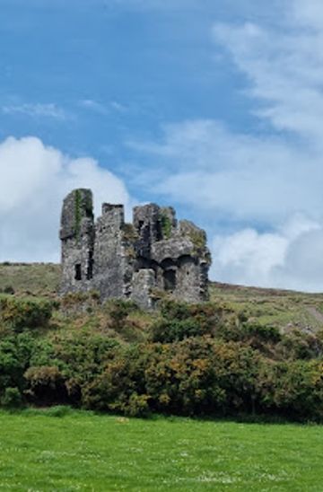 If you are driving along Slea Head Drive, continue on R559, enjoying the scenic views. As you approach Ballybeg, keep an eye out for a small sign indicating Rahinnane Castle. There is limited parking available near the castle, so be prepared to park along the roadside if necessary. Note that the castle is situated in a rural area, so be cautious of local traffic and pedestrians.