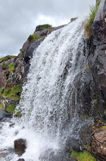 If you are driving along Slea Head Drive, head towards the Conor Pass. As you approach the Conor Pass from the west side (Dingle side), keep an eye out for signs indicating the waterfall. The waterfall is located near Lough Doon, Clogharee in County Kerry. Look for a small pull-off area along the road where you can park safely. From the parking area, you may need to walk a short distance along a trail to fully appreciate the waterfall's beauty.