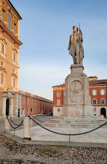 If you are starting from the Modena Cathedral (Duomo di Modena), head east on Corso Vittorio Emanuele II. Walk straight until you reach Piazza Roma, which is about a 10-minute walk. Once you arrive at Piazza Roma, you will see the Monumento a Ciro Menotti directly in front of you. The monument is located at the address Piazza Roma, 21-23, 41121 Modena MO.