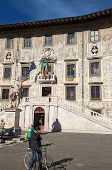 If you have rented a bicycle, start from the Leaning Tower area. Head south on the cycle path along Via Santa Maria. When you reach the intersection with Via dei Cavalieri, turn left. Continue on this road, and you will arrive at Piazza dei Cavalieri in just a few minutes. Make sure to park your bike in a designated area upon arrival.