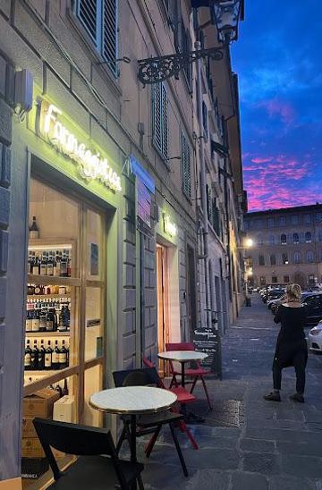 Formaggioteca Terroir is a charming cheese shop, wine bar, and tasting room in Florence's San Niccolò neighborhood. Discover over 50 exceptional Italian and French cheeses, paired with organic wines from small producers. Enjoy intimate tastings, gourmet crostini, and cheese platters in a cozy setting outside the ZTL zone. Perfect for aperitivo, lunch, or dinner with seating for up to 18 indoors and 16 on the outdoor terrace.