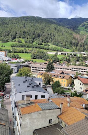 From Bolzano, you can take a regional train to Vipiteno. The trains run frequently, approximately every hour, and the journey takes about 40 minutes. Once you arrive at the Vipiteno train station, exit the station and walk towards the city center, following the signs to Piazza Città. The walk is about 15 minutes. Zwölferturm is located in the main square.