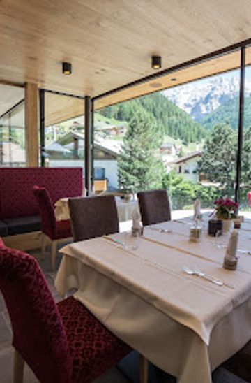 Experience authentic Italian cuisine at Ristorante La Stua Aprés Ski in Selva di Val Gardena - a perfect après-ski destination with stunning mountain views.