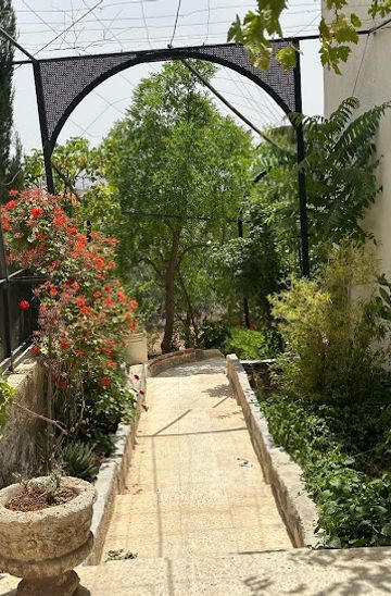 From the center of Jerash (near the local shops), head east on Abu Dharr Al-Ghafari Street. Walk straight for about 1 kilometer. As you walk, you will pass several local shops and cafés. Continue straight, and soon after passing the park, look for 'شقه و استديو / الزنبقة البيضاء جرش' (White Tulips Jerash) on your right side.