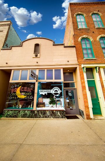 If you are starting from Downtown Lawrence, head south on Massachusetts Street. Continue walking straight for about 0.5 miles. Breakout Lawrence will be on your left at 727 Massachusetts St, a few blocks past the intersection with 8th Street.