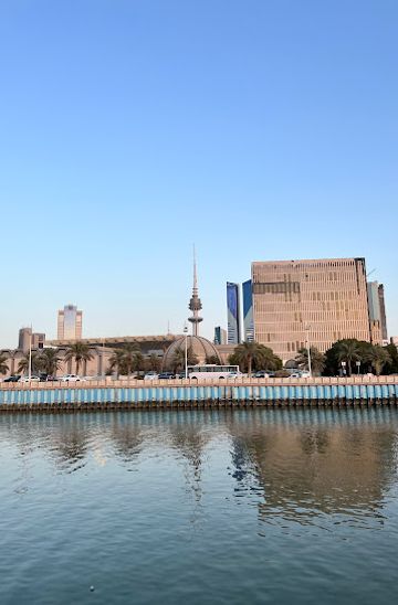 If you are driving from the Kuwait Water Towers, head south on the Gulf Road (Route 60). Continue straight for about 3.5 kilometers. You will pass several landmarks including the Kuwait National Museum on your right. After approximately 3.5 km, take a right turn onto Al Shuhada Street, and then another right onto the waterfront road. Continue along the waterfront for about 1 km until you see the Harbor Walk (Sunset point) on your left. Look for parking spots near the entrance.