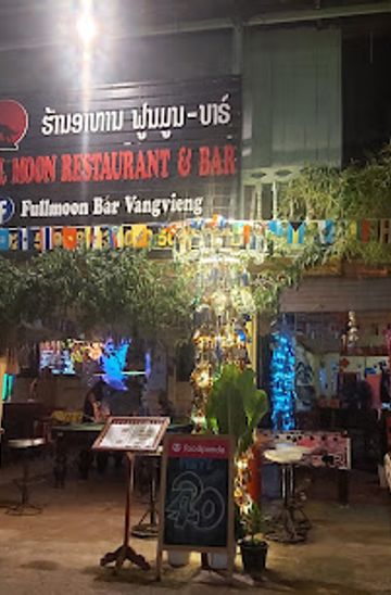 Discover Full Moon: A vibrant restaurant in Vang Vieng offering delicious Lao cuisine in an inviting atmosphere perfect for tourists.