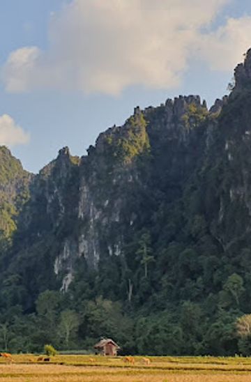 Rent a bicycle from one of the shops in Xieng Khouang, which are commonly found near the market area. Head northwest on Route 7 and cycle for approximately 2 kilometers to the intersection with Route 1C. Turn left onto Route 1C and continue riding for about 1.5 kilometers. Keep an eye out for local signs pointing towards Phone Ngeun village, where Num Bor Keo Cave is located.