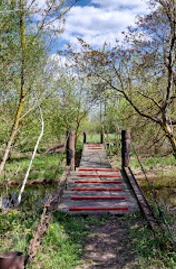 For cycling enthusiasts, rent a bicycle at one of the local bike rental places in Panevėžys. Start from the city center and head towards Daukniškiai. Follow the bike paths along the roads, and keep an eye out for signs pointing to Daukniškiai. The ride should take about 20-30 minutes, depending on your pace. Once in Daukniškiai, navigate to the kabantis tiltas, which you can see from the bike paths along the river.