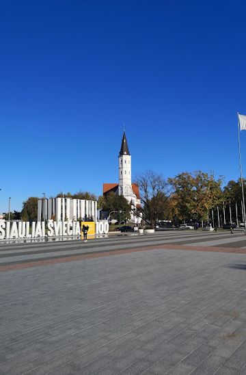 If you're starting from the Šiauliai city center, head towards Vilniaus street. Walk straight until you reach the intersection with Aido street. Turn right onto Aido street and continue straight until you reach the main square, which is Prisikėlimo aikštė. It's about a 15-minute walk.