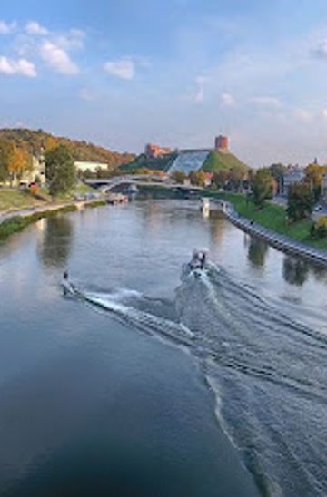 If you are already in the vicinity of the river, you can walk to Riverfont Arch (The Pipe). Starting from the Vilnius Cathedral, walk towards the river and follow the riverbank path heading southeast. This scenic walk takes about 30 minutes and provides beautiful views of the city along the way. There are no additional costs for walking.