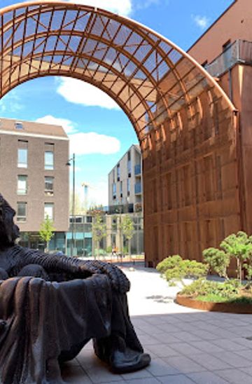 From the Užupis Angel statue, head south on Užupio Street. Continue straight until you reach the intersection with Maironio Street. Turn left onto Maironio Street and walk straight until you reach the riverbank. Cross the bridge over the Vilnia River and continue walking along the riverbank. You will see signs pointing towards Paupys. Follow the path along the river, and after a few minutes, you will arrive at Rytmetis located at Aukštaičių g. 5.