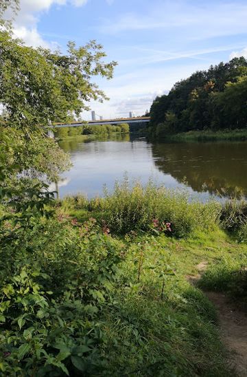 If you're already in Žvėrynas, start by heading towards the main street, Žvėryno gatvė. Continue walking straight until you reach the intersection with the river. You will find a pathway that leads you along the Neris River. Keep walking along this path, enjoying the scenic views of the river and surrounding nature. After about 15-20 minutes, you will arrive at the area where Žvėryno grota is located, which is marked by a slight elevation and a natural grotto area. Keep an eye out for the small signs indicating the scenic spots along the way.