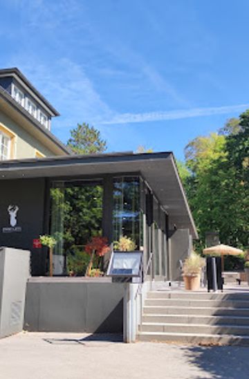 Located adjacent to the expansive Parc Le'h grounds in Dudelange, the restaurant sits at the park’s green edge, a short stroll from the water features and a central pergola.
