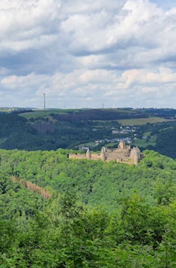 If you are driving from the center of Minette, head northeast on Route de Luxembourg (N10) for approximately 12 kilometers. Follow signs for Bourscheid. Once you reach Bourscheid, continue straight onto Rue de Bourscheid. After a short distance, turn left onto the road leading to the castle viewpoint. There is parking available near the viewpoint, and parking may incur a small fee.