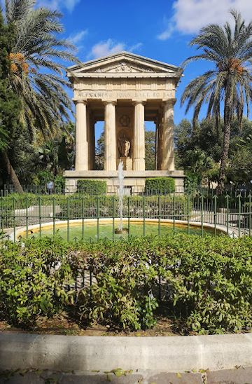 Enjoy panoramic views of the Grand Harbour from this peaceful garden in Valletta, featuring historical monuments and lush greenery.