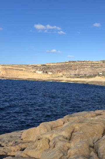 From the Dwejra Bay parking area, head east towards the coast. Follow the path along the shoreline for about 10 minutes. Keep an eye out for the cliffs on your left and the sea on your right. As you walk, you will see signs pointing towards Tilt Rock Il. Continue until you reach the viewpoint overlooking Tilt Rock Il, which is located at the coordinates 36.0480374, 14.1887767.