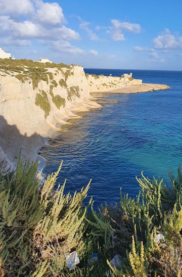 Start from the center of Marsaskala, near the Marsaskala Bay. Head southeast along the promenade towards the coastal area. Continue walking along the promenade until you reach the end where you will see a small park area. From here, take the path that leads you directly to the beach area. Keep walking straight, and you will find yourself at St Thomas Bay.