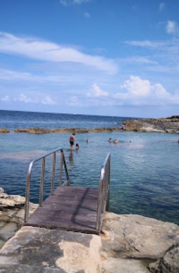 From the main bus stop in Qawra, take the bus route towards St. Paul's Bay. The bus ride takes about 10 minutes. Get off at the stop nearest to the Qawra Point area. Once you alight, follow the signs directing you towards Qawra Point Beach. It’s a short walk from the bus stop to the beach, approximately 5 minutes. Look for the path that leads down to the shoreline.