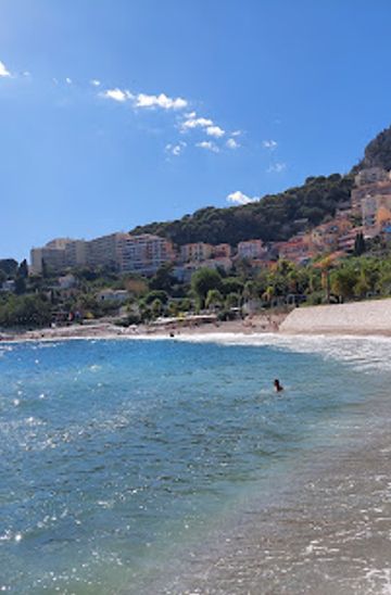 From Nice, take the No. 600 bus towards Menton. Get off at the 'Liberté' stop in Cap d'Ail. Walk east for about 5 minutes to reach the beach. A single bus fare costs approximately €3.