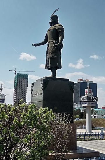 From Zuunmod Central Square, find the nearest bus stop and take bus number 12 towards Ulaanbaatar. The bus will take you directly into the city center. Once you reach the Ulaanbaatar Central Bus Station, transfer to bus number 3 or a minibus heading towards Khoroo 8. Disembark at the Khoroo 8 stop, which is close to the Estátua de Marco Polo. From there, it's a short walk to the sculpture.