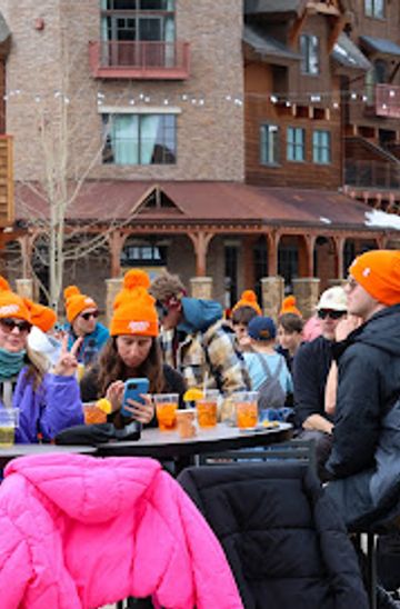 Experience the vibrant atmosphere and stunning views at Umbrella Bar, the perfect mountain retreat in Big Sky, Montana.