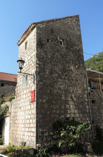 From the main waterfront promenade in Perast, start at the Church of St. Nicholas. Walk along the waterfront heading south towards the end of the promenade. Continue past several charming cafés and small shops until you reach a narrow street on your left labeled 'FPP2+4QR'. Turn left onto this street. Palača Mazarović will be located along this street. It's a short walk, approximately 5-10 minutes from the church.