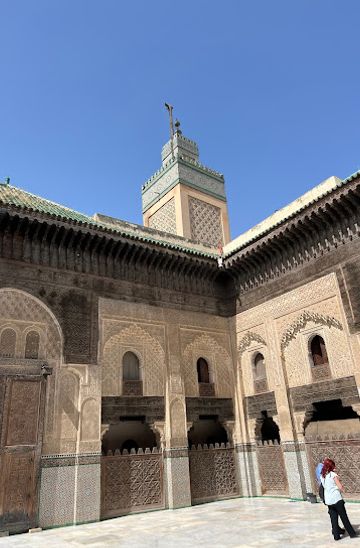 If you are near the Medersa Bou Inania, exit the medersa and turn left onto Rue Talaa Kebira. Walk straight for about 5 minutes. You will see the Dar al-Magana (Water Clock) on your right, just after passing a few local shops.