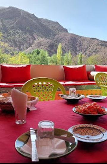 Discover authentic Moroccan cuisine at Restaurant Jardin Berber, your perfect stopover in the scenic Atlas Mountains.