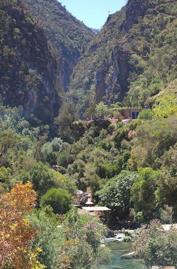 To reach The God's Bridge via public transport, take a bus from Chefchaouen to Akchour. Buses depart regularly from the main bus station. The fare is approximately 10 MAD and the journey takes about 45 minutes. Once you arrive in Akchour, you can either walk or hire a local taxi to take you to the trailhead for The God's Bridge. The taxi ride will cost around 50 MAD. From the drop-off point, it's a 30-minute hike to the bridge.