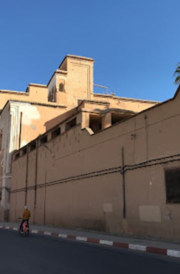 Rent a bicycle from one of the local rental shops near Place Assarag. Head towards Avenue Mohammed V and ride straight for about 1 kilometer. Turn left onto Avenue Hassan II and continue for about 500 meters. As you approach the Regional Hospital, look for the signs directing you to 'المستشفى الإقليمي المختار السوسي'. Dar El Baroud will be located about 100 meters past the hospital entrance.