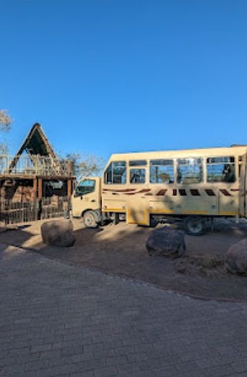 From central Keetmanshoop, start by heading south on Main Street. Continue straight for about 1.5 kilometers until you reach the intersection near the Keetmanshoop Railway Station. Turn left onto the B1 road, which is also known as the Trans-Kalahari Highway. Walk along the B1 for approximately 2 kilometers. As you approach the outskirts of town, keep an eye out for the signs directing you to Quivertree Forest Rest Camp. The entrance will be on your right, marked by a sign that indicates 'Quivertree Forest Rest Camp'.