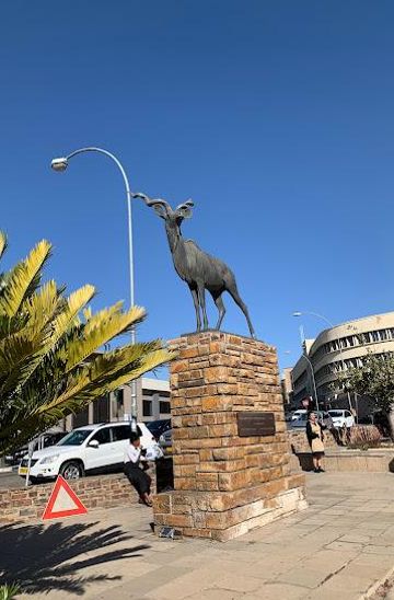 If you are in the center of Windhoek, start by heading east on Independence Avenue. Look for the Namibia Craft Centre on your left, which is a good landmark. Continue walking straight for about 10 minutes until you reach the corner of John Meinert Street. The Kudu Statue is located at the intersection of Independence Avenue and John Meinert Street, just ahead on your right.