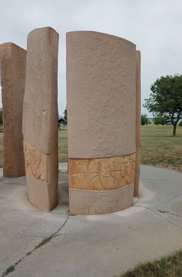 If you are near the Old Market area, you can walk to the exhibit. Head south on 11th Street towards Farnam Street, then turn left on Farnam Street and continue until you reach the Missouri River. Follow the riverfront walking path north. After approximately a 30-minute walk, you will reach Freedom Park. The exhibit is located at 151 Freedom Park Rd, just a short walk from the park entrance.