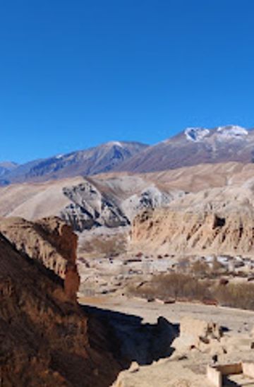 If you are in the main town of Lo Manthang, you can hire a private vehicle or taxi to take you to Chhoser, where Zhong Cave is located. The drive is approximately 1.5 to 2 hours depending on road conditions. Head southeast on the main road towards Chhoser. Upon reaching Chhoser, you will see signs directing you towards the cave, which is situated a short hike away from the village.