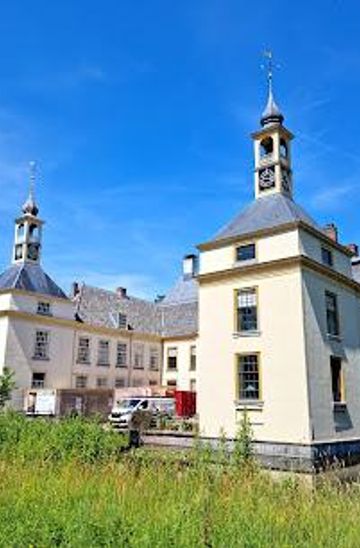 From the center of Delft, head northeast toward the Markt Square. Once you reach the square, locate the bus stop near the New Church (Nieuwe Kerk). Catch bus number 33 towards 'Voorhout'. After approximately 15 minutes, get off at the 'Warmond, Huys te Warmond' stop. From there, walk 5 minutes following the signs to Estate Huys te Warmond, which is located in a park setting.