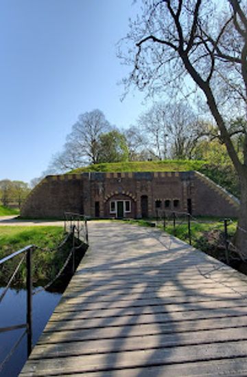 Rent a bike from one of the many bike rental shops in Utrecht. Head east on the Croeselaan, then follow the signs for the 'Fietsknooppunt' network towards Bunnik. Continue biking along the designated bike paths for about 30 minutes until you arrive at Vossegatsedijk. The fort will be located on your left as you approach.