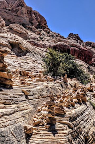 If you're using public transportation, start at the Las Vegas Strip and take the RTC bus (Route 201) towards the Las Vegas Premium Outlets. This will take you to the nearest stop at Blue Diamond Road. From there, you will need to arrange a rideshare service (like Uber or Lyft) or taxi to take you to the Red Rock Canyon entrance. After entering the park (with a $15 entrance fee per vehicle), you can park at the Calico Tanks Trailhead.
