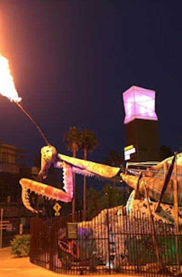 If you are in or near Downtown Las Vegas, you can walk to the Giant Metal Mantis. Start at the Fremont Street Experience and head east along Fremont Street. Continue walking for about 0.5 miles until you reach 707 E Fremont St. The walk will take approximately 10-15 minutes, and you'll get to enjoy the vibrant atmosphere of Downtown Las Vegas.