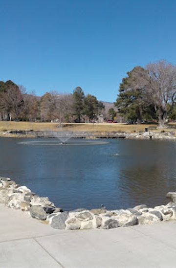 If you are starting from the Los Alamos Visitor Center located at 475 20th St, Los Alamos, NM 87544, begin by heading east on 20th St toward Central Ave. After about 0.2 miles, turn right onto Central Ave and continue for approximately 0.5 miles. You will pass by various shops and restaurants. Ashley Pond is located in the center of downtown Los Alamos, on your left. The pond is surrounded by beautiful gardens and historical information plaques.