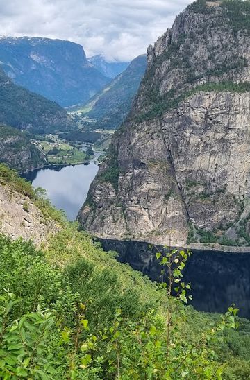 From Flåm, head southeast on Flåmsdalen towards the E16 highway. After about 5 kilometers, turn right onto the E16 road. Continue on E16 for approximately 10 kilometers until you reach Aurland. Look for the signs indicating Hagatunnel, which is located just off the E16. You will need to park in the designated parking area near the tunnel entrance. Parking may incur a fee, so be sure to have some cash or a card ready.