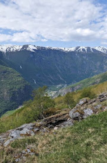 From Gudvangen, head northeast on Fv 13 towards Flåm. Continue on Fv 13 for approximately 14 km until you reach the junction with E16. Turn right onto E16 and drive for about 8 km. Take the exit towards Flåm, and follow the signs to Gudmedalen. The destination will be on your left. Please note that parking may incur a fee, so be prepared with local currency for parking meters.