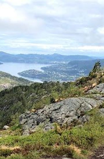 To reach Stoltzekleiven via public transport, take the Light Rail from Bergen city center (Bergen Stasjon) towards Lagunen. Get off at the stop 'Bergen, Byparken'. From there, walk south on Strømgaten towards Torgallmenningen, then continue onto Håkonsgaten. After about 15 minutes of walking, you will reach the area around Stoltzekleiven. Look for signs indicating the hiking trail leading up the stairs.